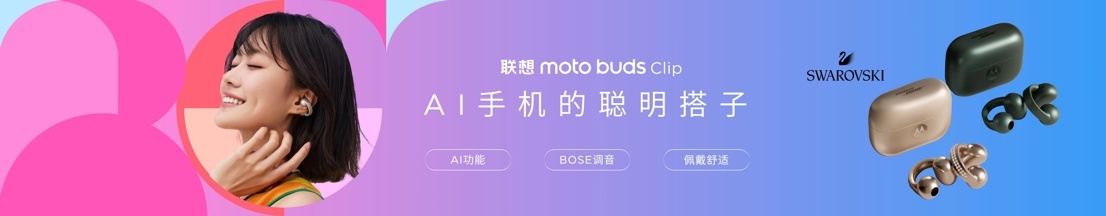 当用户在遇到不方便手持手机使用时,可以一键呼出天禧个人超级智能体,轻松享受解放双手的便利 AI 体验。此外,联想还推出了联合施华洛世奇打造的联想 moto buds clip 晶钻限量版 AI 耳机。