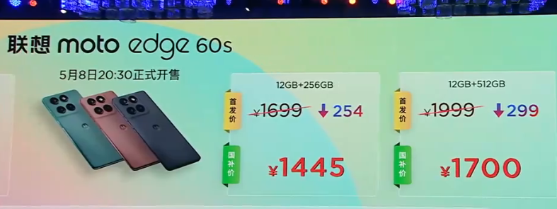 edge 60s 定价 1699 元起,国补后 1445 元起。