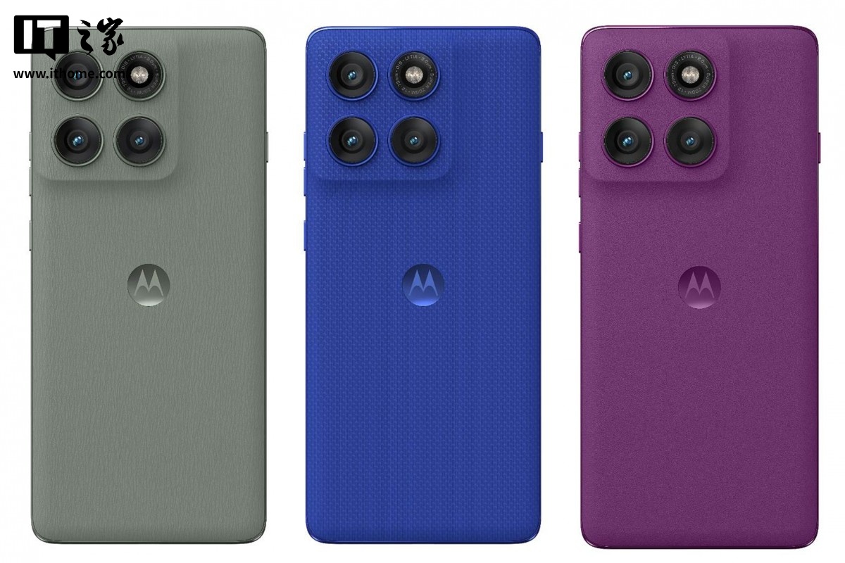 edge 60 系列在外观设计上引入了 Pantone 精心策划的色彩方案和全新的纹理背板。edge 60 Pro 提供三种不同质感的配色版本:Pantone Shadow 版本采用类似皮革的背板,Pantone Dazzling Blue 版本采用类似尼龙的纹理设计,而 Pantone Sparkling Grape 版本则呈现出类似砂纸的独特质感。edge 60 也提供了三种配色方案,包括类似尼龙质感的 Pantone Gibraltar Sea、类似皮革质感的 Pantone Shamrock 和类似砂纸质感的 Pantone Plum Perfect。