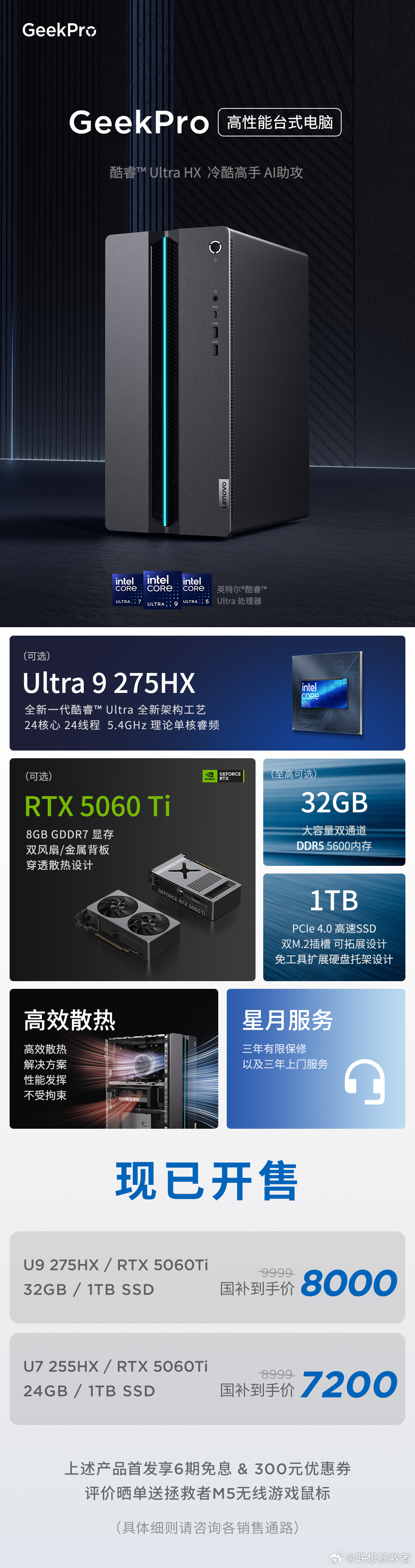 Ultra 9 275HX + RTX 5060 Ti + 32GB + 1TB 售价 9999 元,国补后 8000 元