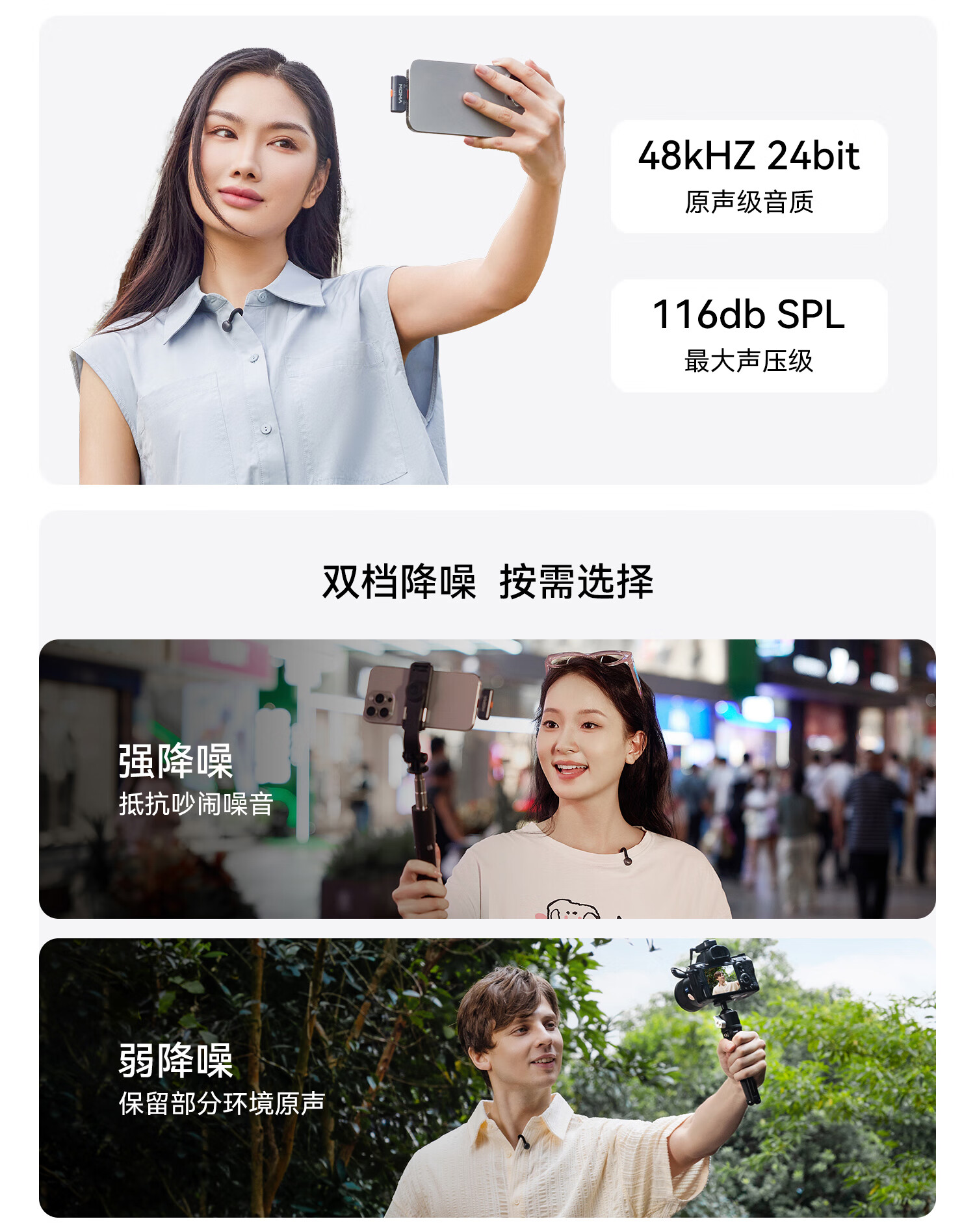 猛玛 LARK M2 隐藏式直播麦克风,采用前置微型拾音孔 + 无外露 logo 设计,迎合出镜需求,后期剪辑更轻松。