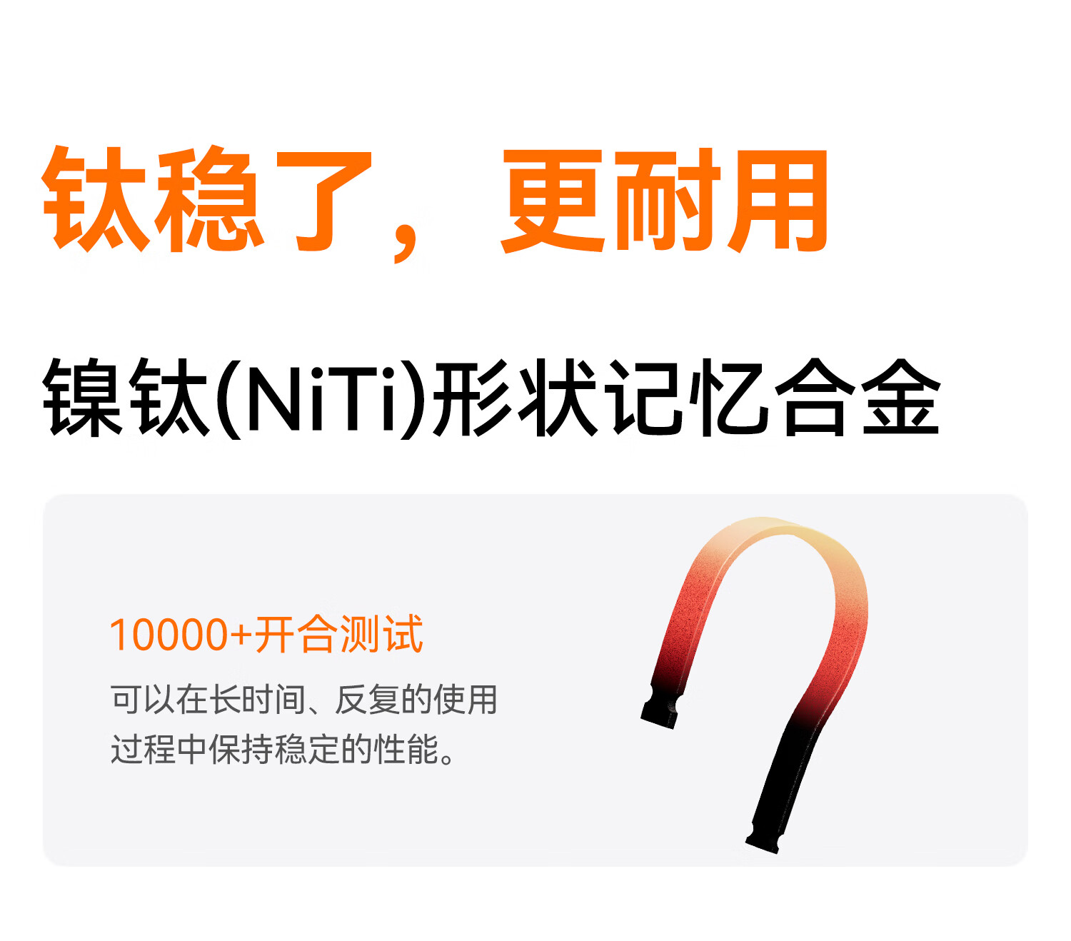 采用镍钛形状记忆合金,支持长时间、反复开合后保持稳定性能。