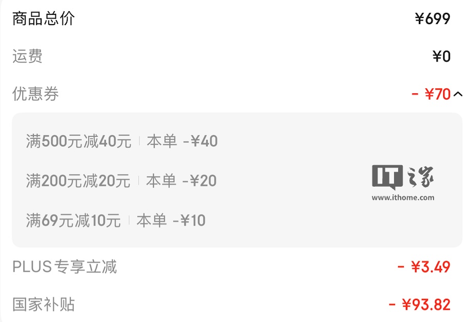 叠加上方三张券后,付款时使用“云闪付”国家补贴 15%,实付 531 元即可入手: