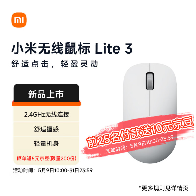 IT之家 5 月 9 日消息,小米无线鼠标 Lite 3 今日上架京东等平台,提供深空黑、素白灰两款配色,预售价 39 元,预计 5 月 14 日发货。