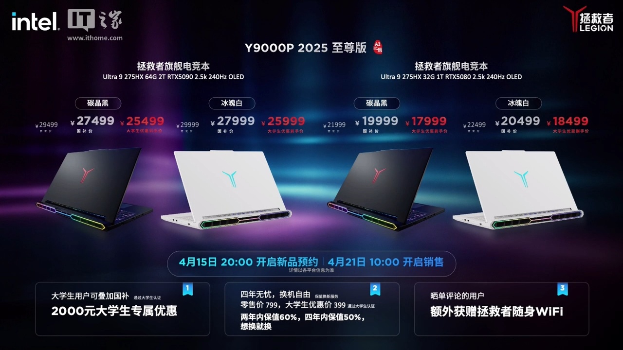 IT之家注意到,现款普通版联想拯救者 Y9000P 2025 至尊版笔记本搭载英特尔酷睿 Ultra 9 275HX 处理器,可选 RTX5080/5090 版本,定价 21999 元起(国补后 19999 元起)。