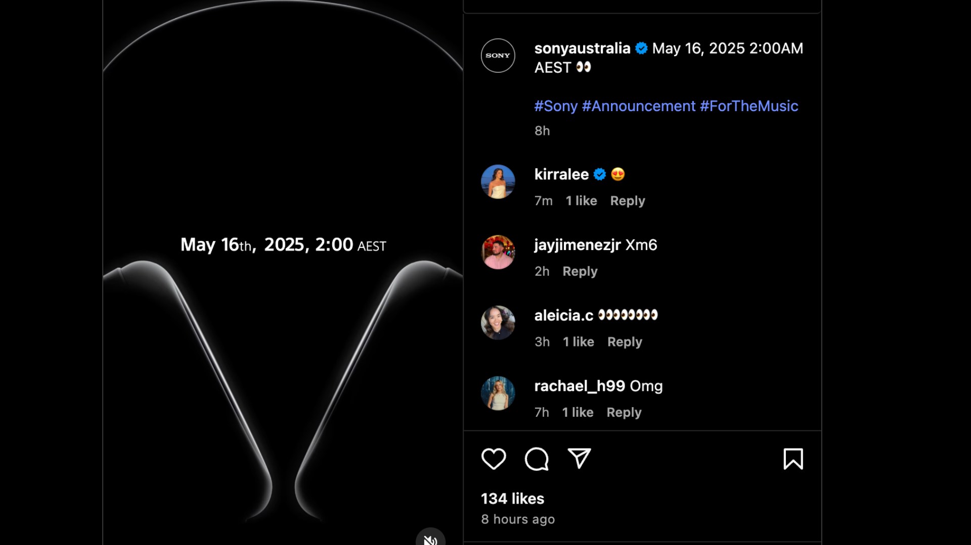 IT之家 5 月 10 日消息,索尼已官宣将于澳大利亚东部时间 5 月 16 日凌晨 2 点(IT之家注:北京时间 5 月 16 日凌晨 4 点),发布全新一代降噪耳机 WH-1000XM6,并将通过 YouTube 等平台直播发布活动。