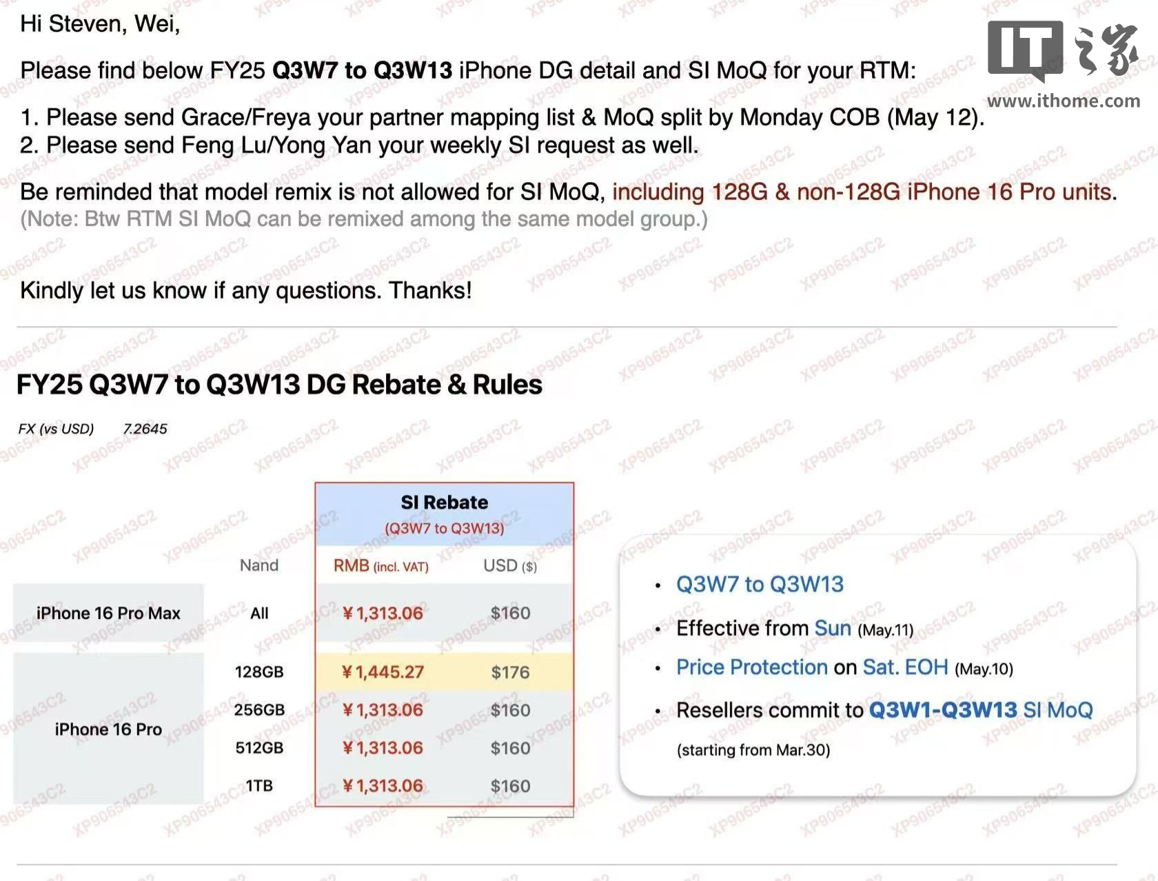 IT之家 5 月 10 日消息,苹果今日向渠道商下发了调价通知,这也是苹果首次在周六宣布调价,给相当大一部分批发商打了个措手不及。