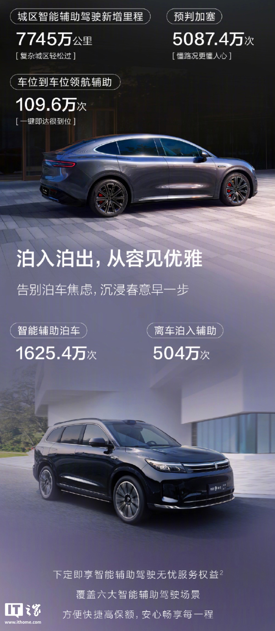 鸿蒙智行表示,本月相应车型帮助用户避免可能的碰撞次数 9.4 万次,高速智能辅助驾驶新增里程 1.9 亿公里、应对高速别车 / 加塞 1946.53 万次,城区智能辅助驾驶新增里程 7745 万公里、预判加塞 5087.4 万次,车位到车位领航辅助 109.6 万次、智能辅助泊车 1625.4 万次、离车泊入辅助 504 万次。