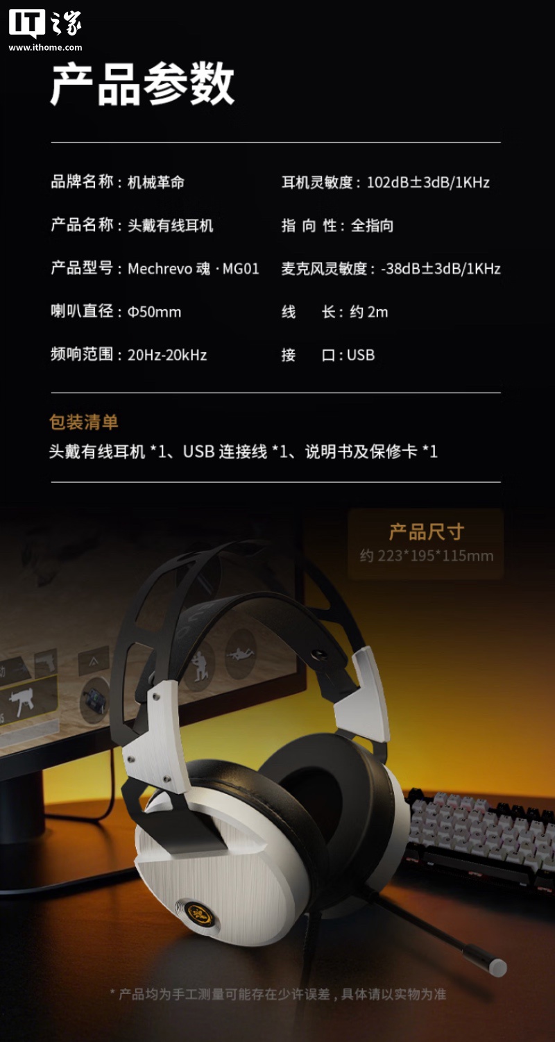 IT之家 5 月 10 日消息,机械革命现已在京东上架一款魂・MG01 有线头戴式耳机,其主打“50mm 动圈、虚拟 7.1 声道”,标准价 139 元,首发价 119 元。