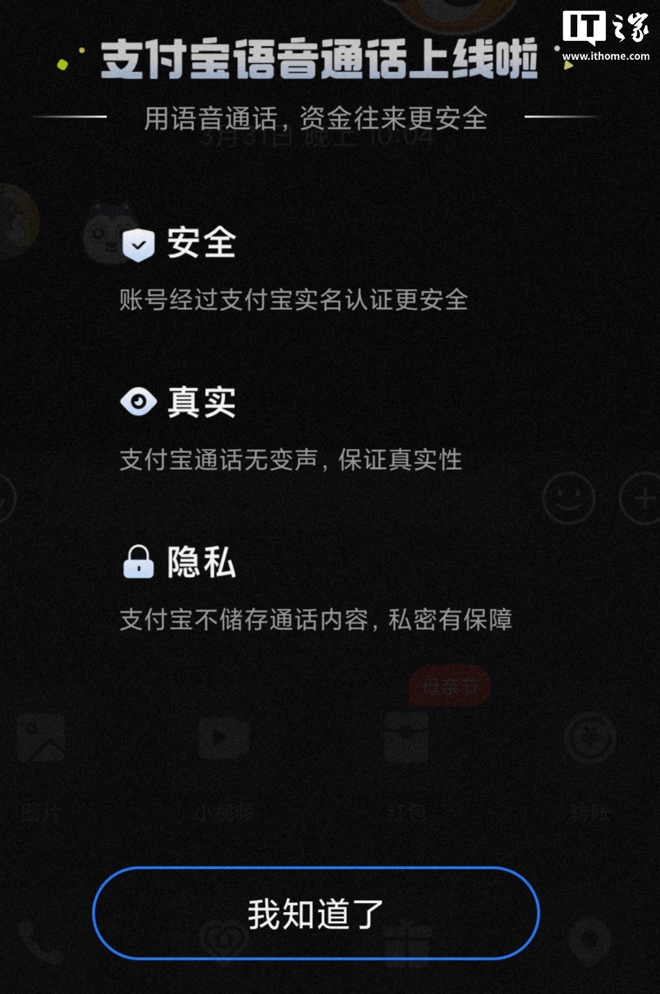 IT之家 5 月 12 日消息,据IT之家小伙伴反馈,支付宝在今年 4 月悄悄上线了语音通话功能,用户可以和好友进行语音沟通。
