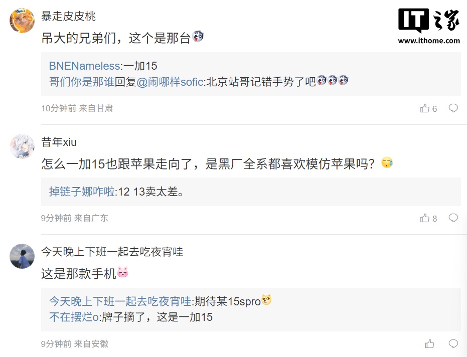 ▲ 爆料微博下方评论区中,不少网友猜测这是一加 15 手机。IT之家注意到,一加 13 搭载了骁龙 8 至尊版,以及 3168×1440 屏幕(2K 屏),因此如果爆料是指一加 15,那么新机的屏幕分辨率会有所降低。