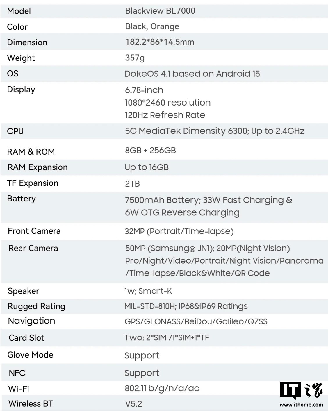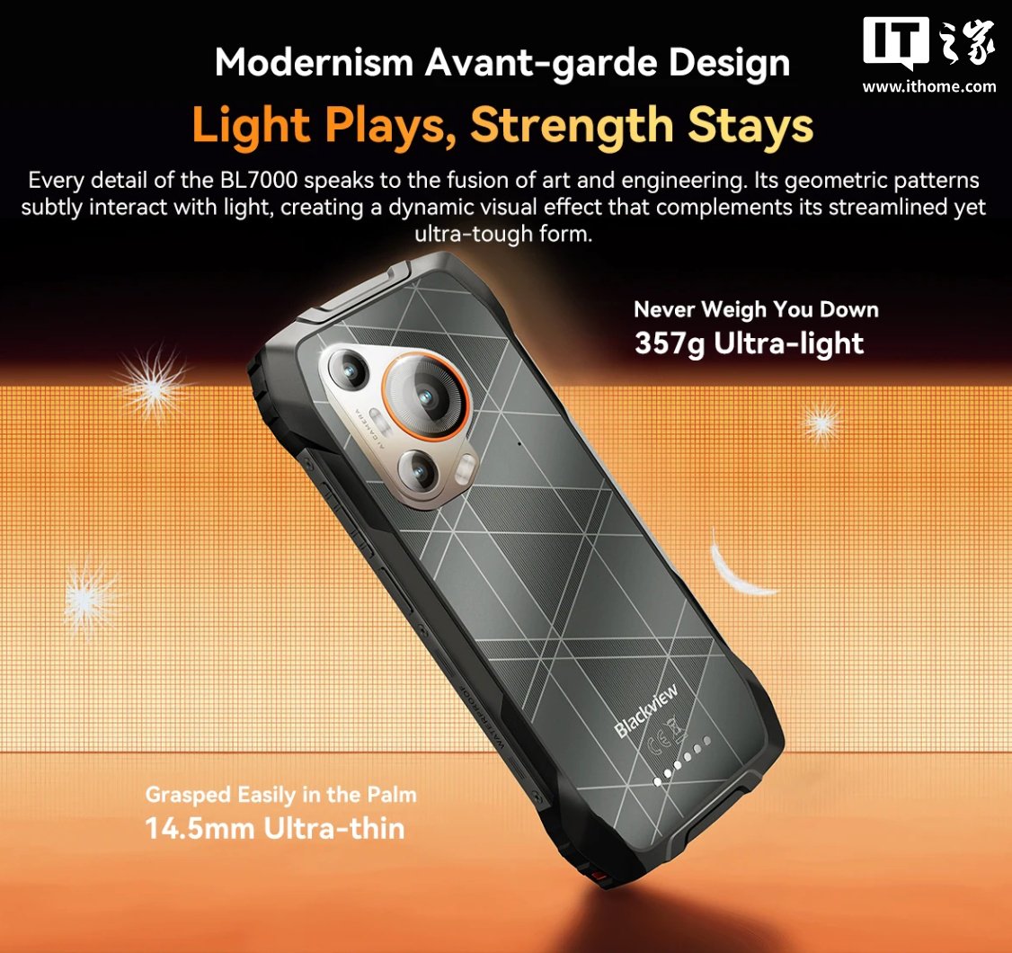 IT之家 5 月 12 日消息,Blackview 发布了 BL7000 三防手机,该手机内置 7500mAh 电池,支持 33W 快充,配备 2000 万像素夜视镜头。