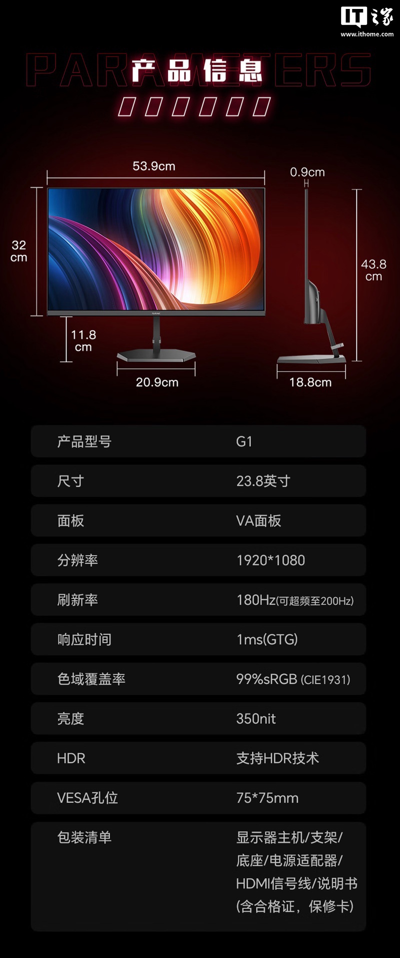 IT之家附显示器参数信息如下: