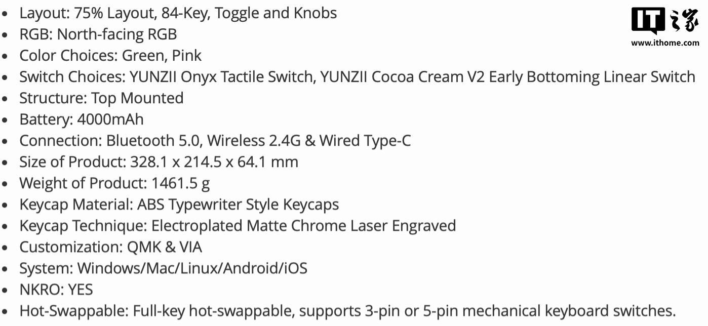 IT之家附该机械键盘详细参数如下: