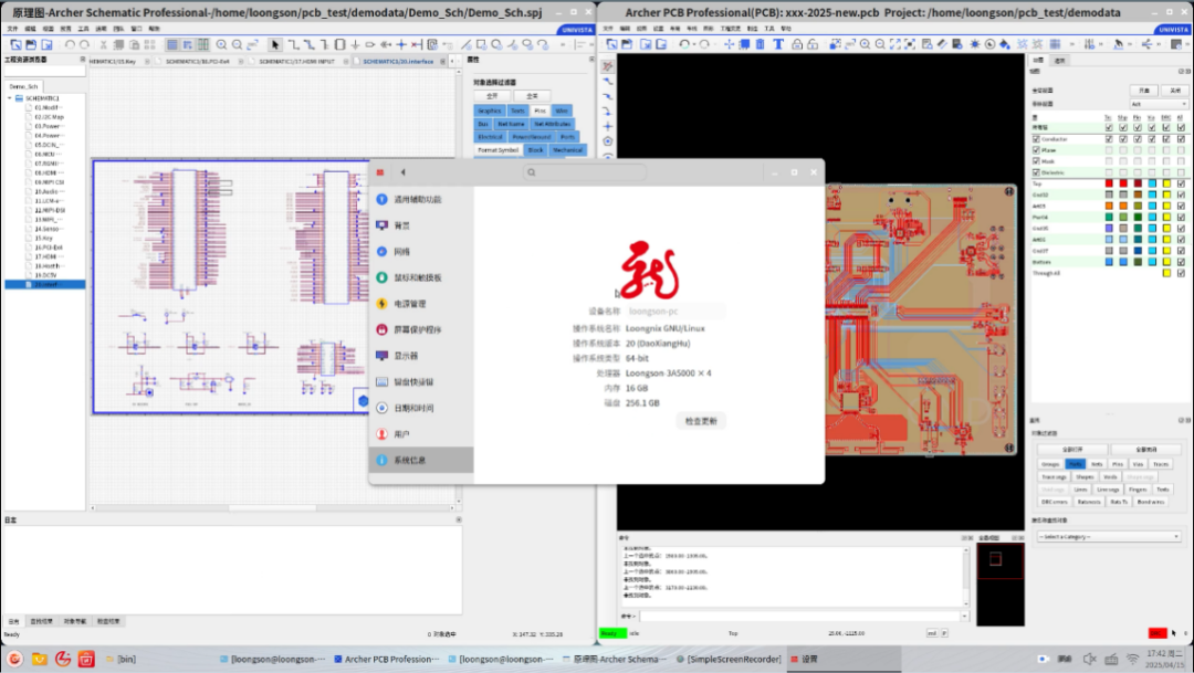 IT之家 5 月 12 日消息,据龙芯中科消息,近日,龙芯 3A5000/3A6000 桌面终端与上海合见工业软件集团有限公司自主研发的 PCB 设计软件 UniVista Archer 成功适配,实现了电子系统设计平台从电子硬件设计工具到硬件研发平台的全国产化链路闭环。