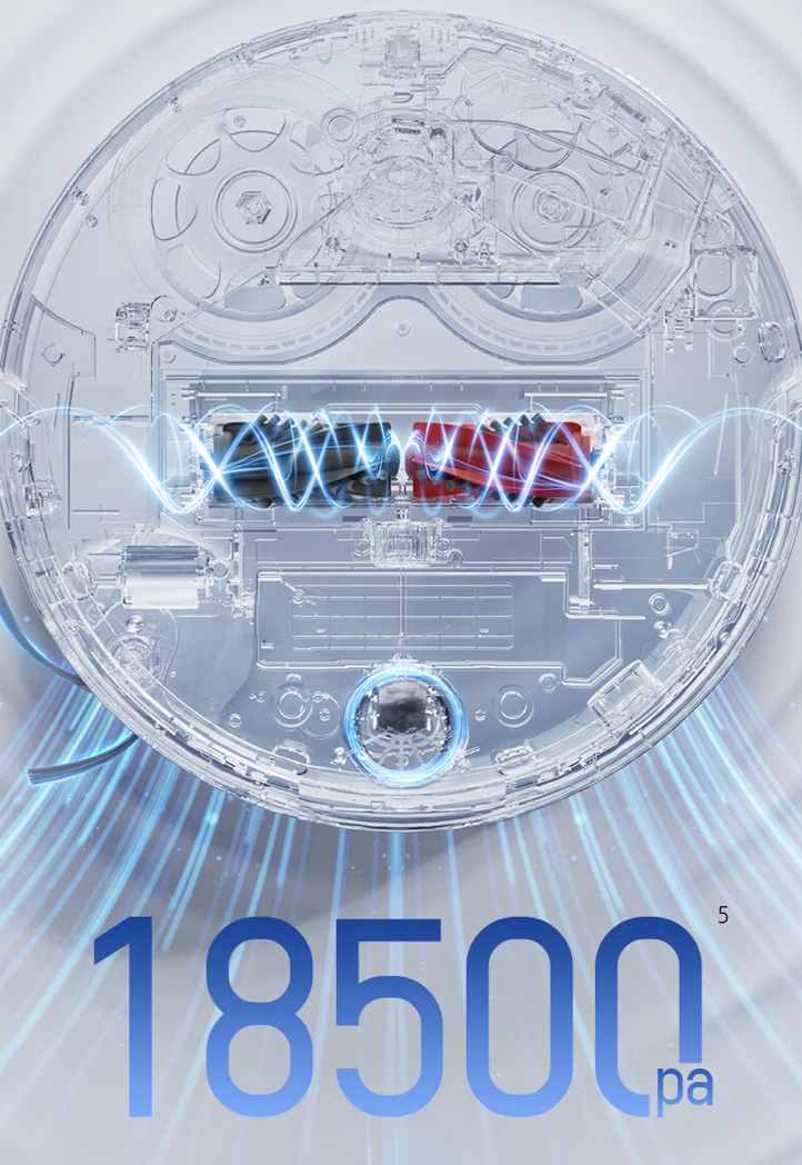该款扫拖机器人还配备“无界智能底盘”,底盘支持升降功能,可越过门槛、易卡家具、中长毛地毯等障碍物,适配不同空间情况进行清理打扫。