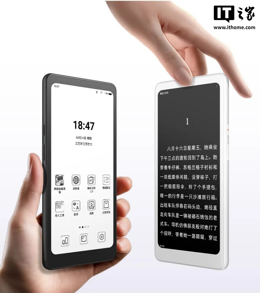 新机可选黑白双色,搭载 6.13 英寸墨水屏,整体造型为手机形态,配有 6nm 工艺 8 核 CPU。