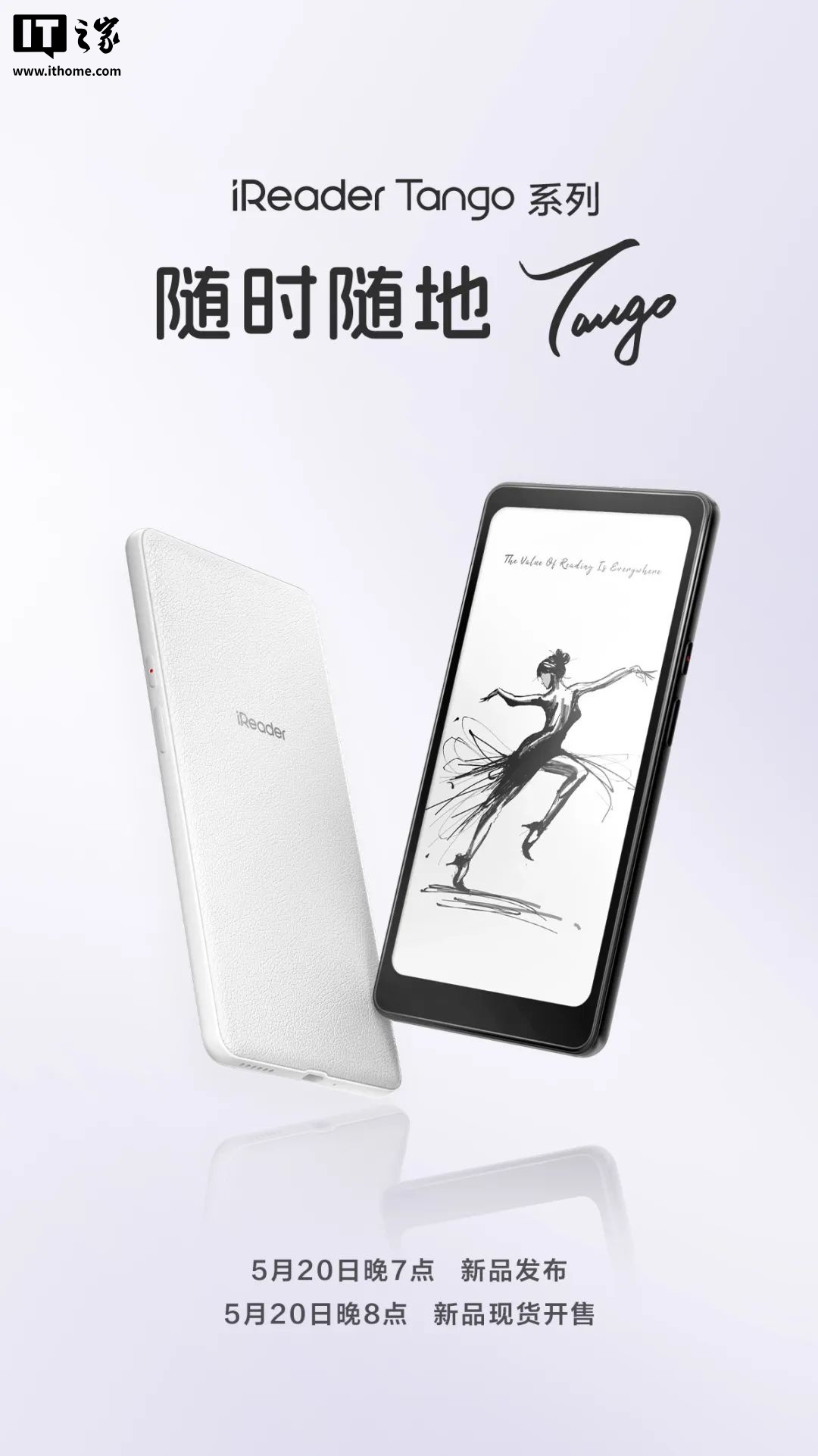IT之家 5 月 13 日消息,掌阅今日公布了 iReader Tango 系列墨水屏设备,新品将于 5 月 20 日晚 7 点正式发布。