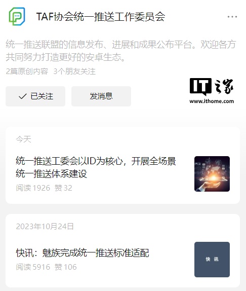 IT之家 5 月 13 日消息,“统一推送工委会”(以下简称“工委会”)自 2017 年 10 月成立以来受到了产业界和用户的关注。今日,工委会时隔一年半发文,透露了目前的工作进展。