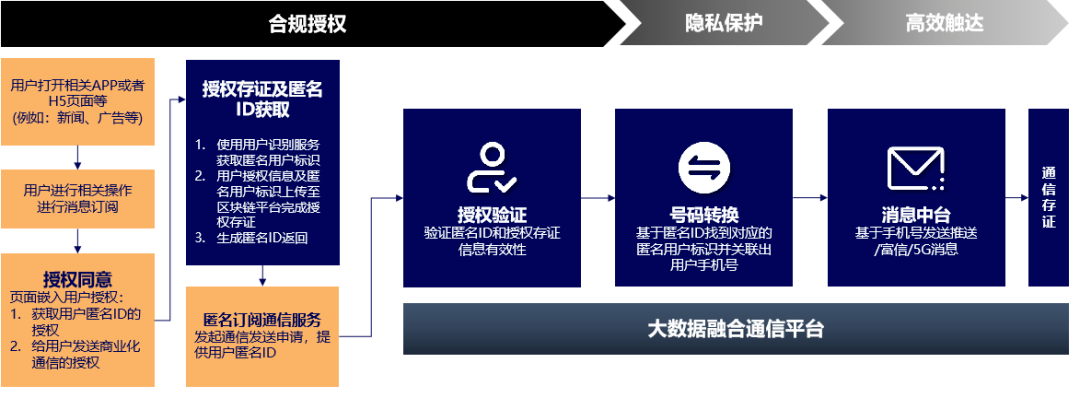 在以身份 ID 为基础的通信短消息规范化管理方面,统一推送工委会联合运营商及行业组织,在 2023 年共同提出了“匿名订阅通信服务”的技术实现方案,其核心是,在用户主动授权后,通过运营商核心能力为用户生成“临时号码”暨匿名 ID,代替用户手机号码,以保障用户在浏览、咨询、订阅信息后,其个人信息无法被应用获取,保护了用户的隐私。由统一推送工委会推动、中国互联网协会归口的《匿名订阅通信服务技术规范》标准已编制完成。相关能力已完成联调,并联合行业完成了多轮内测。