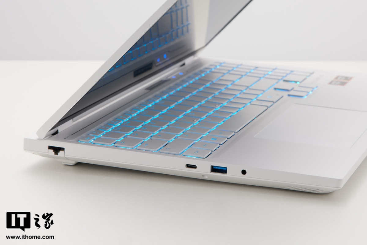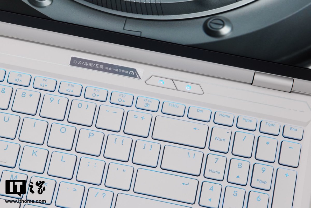 C 面也是纯白风格的下沉式全尺寸键盘,默认键盘背光为浅蓝色,整体非常和谐。