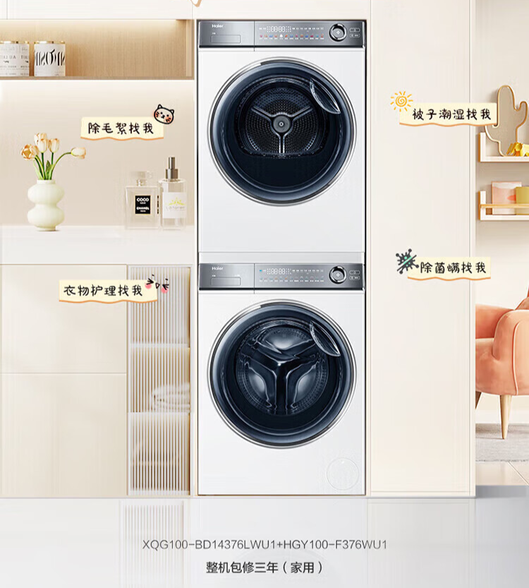 海尔云溪系列 376W 直驱智投洗衣机 + 376W 热泵烘干机组合套装上市售价 9998 元左右。
