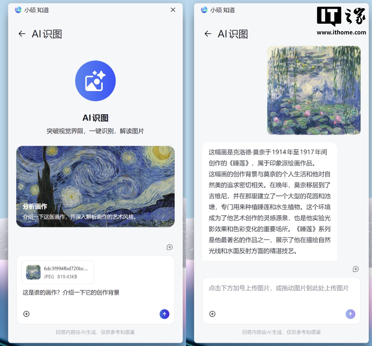 通过 AI 识图功能,用户可将本地或在线图片发给小硕,让它告诉你关于这幅图片的来源、创作者以及其它信息,有助于帮助创作者更好理解图片内容。