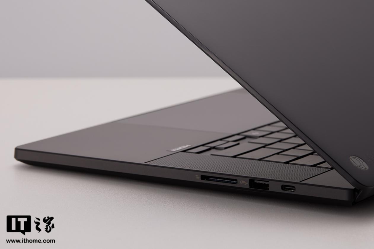 尺寸方面,ProArt 创 16 2025 的机身厚度上仅有 14.9mm,并采用内部结构优化和金属材质 D 壳,将整机重量做到轻约 1.8kg,足以体现出它的轻薄属性。机身背面有 3 颗状态指示灯,可方便用户了解接电和电池状态。