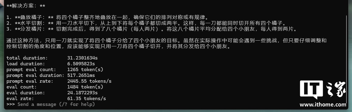 随后我们又提问了多个弱智吧的经典问题,最终得出 ProArt 创 16 2025 的 DeepSeek-R1 7b 模型的平均推理速度达到了 60.65 tokens / s,这个表现非常可以,要知道 RTX 4070 笔记本在本地部署的 DeepSeek-R1 7b 模型中,平均推理速度也才 30-40 tokens / s 左右。