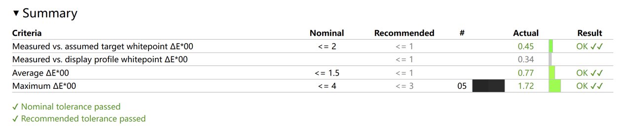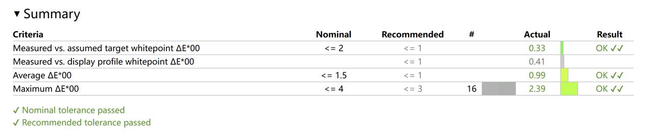 色准方面,我们分别测试了三种专业色域模式下的表现,在 sRGB 色域模式下,平均 Delta E 为 0.99,最大 Delta E 为 2.39。