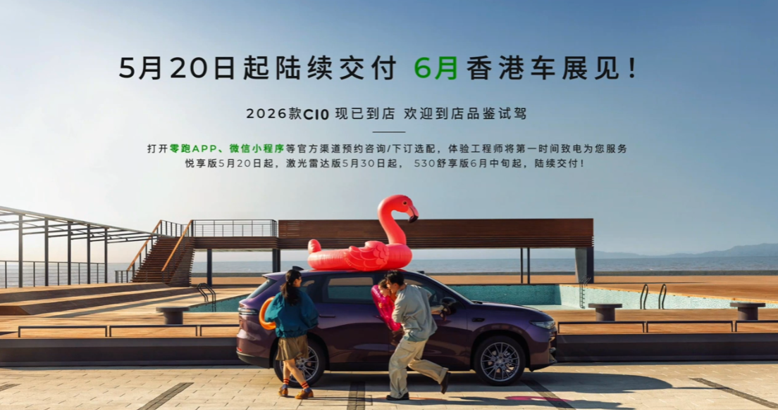 2026 款零跑 C10 车型将于 5 月 20 日起陆续交付,同时新车还将亮相香港车展。