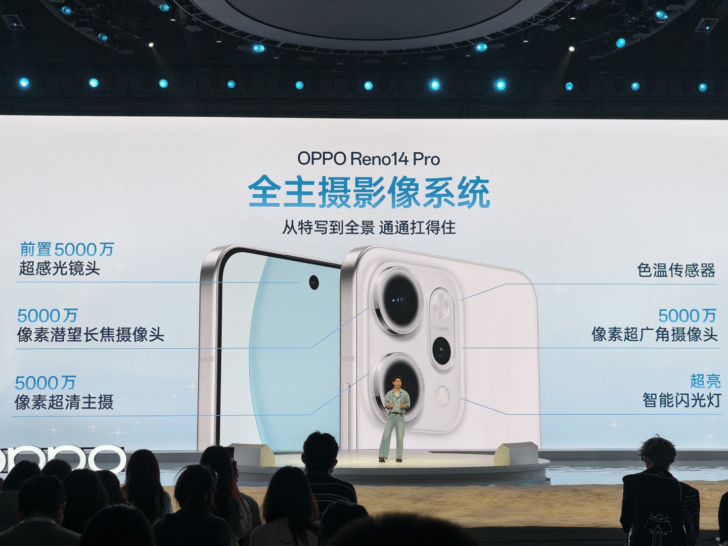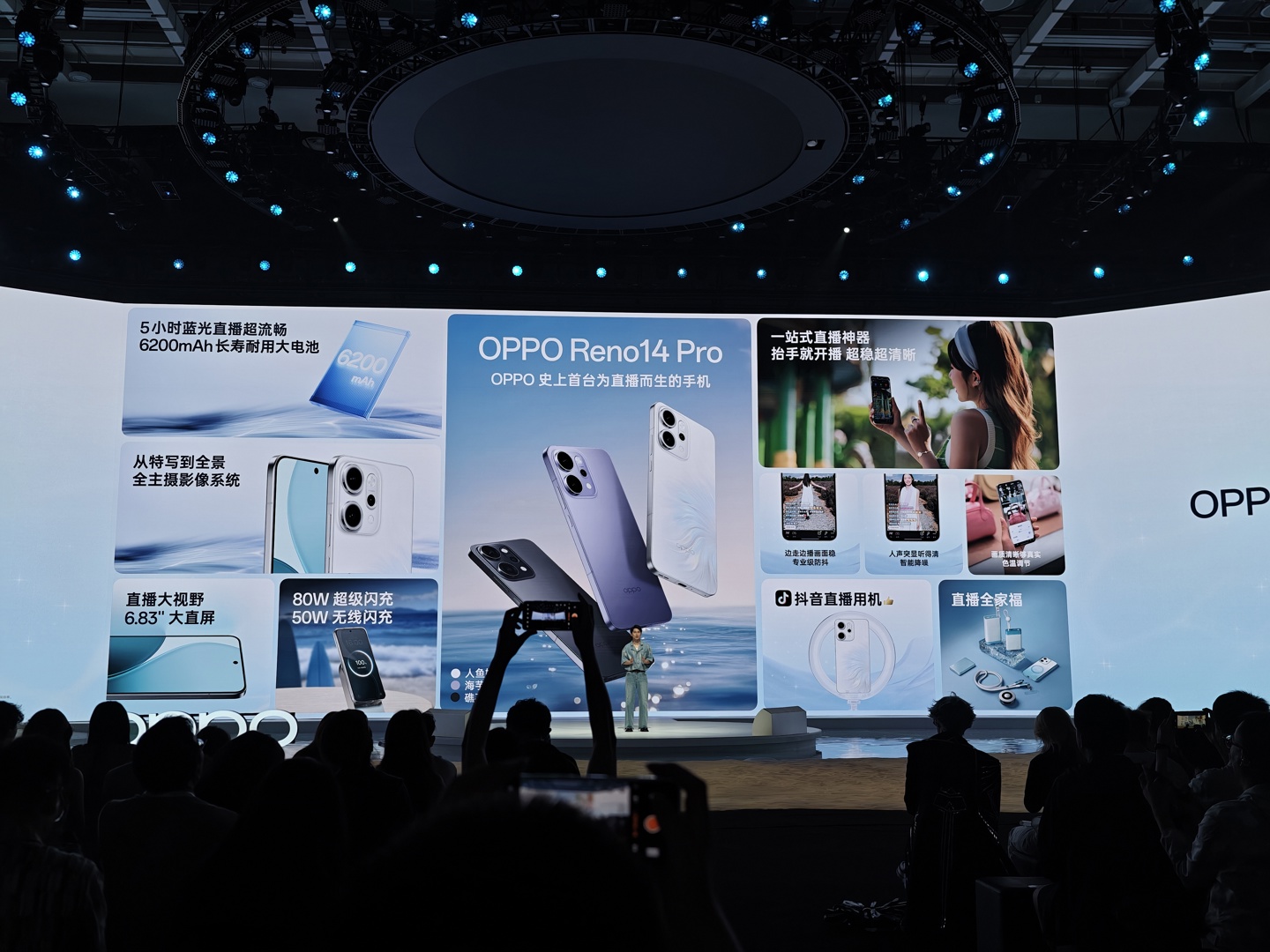 OPPO Reno14 Pro 支持专业级防抖、智能降噪、超清画质、色彩高还原,号称是“一站式直播神器”。