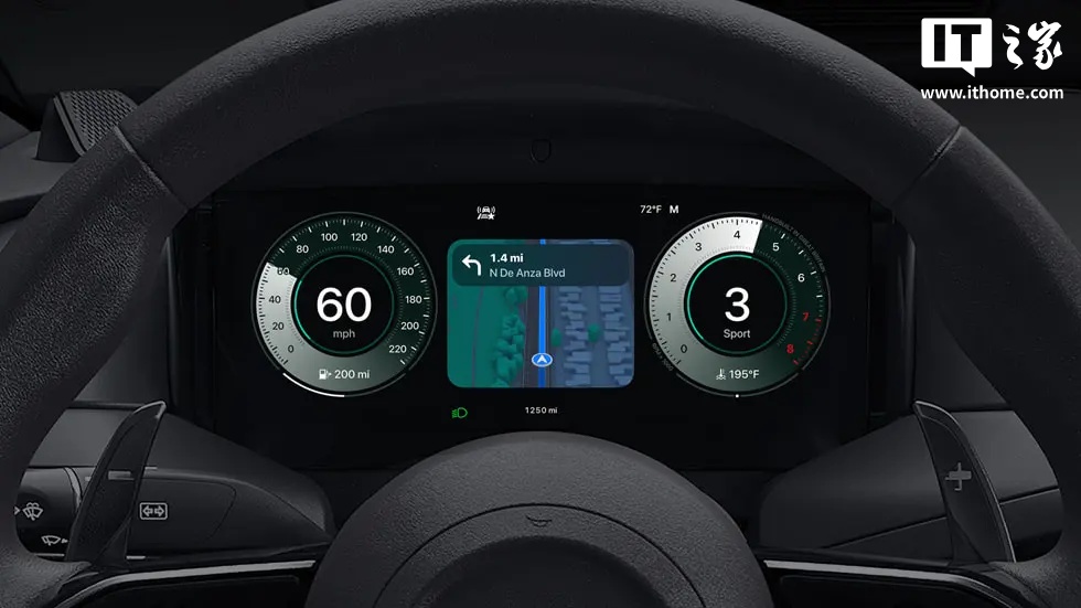 据苹果介绍,CarPlay Ultra 通过将车辆控制功能与 CarPlay 体验深度整合,实现了对车辆仪表盘和仪表的显示接管,包括空调、驾驶辅助系统等的开关控制,以及更高级的媒体控制功能。该系统不仅服务于车辆的主信息娱乐显示屏,而是车内的所有屏幕,例如数字仪表盘中的速度表、转速表、燃油表等。此外,CarPlay Ultra 的媒体和导航应用也能够无缝集成到仪表盘中。