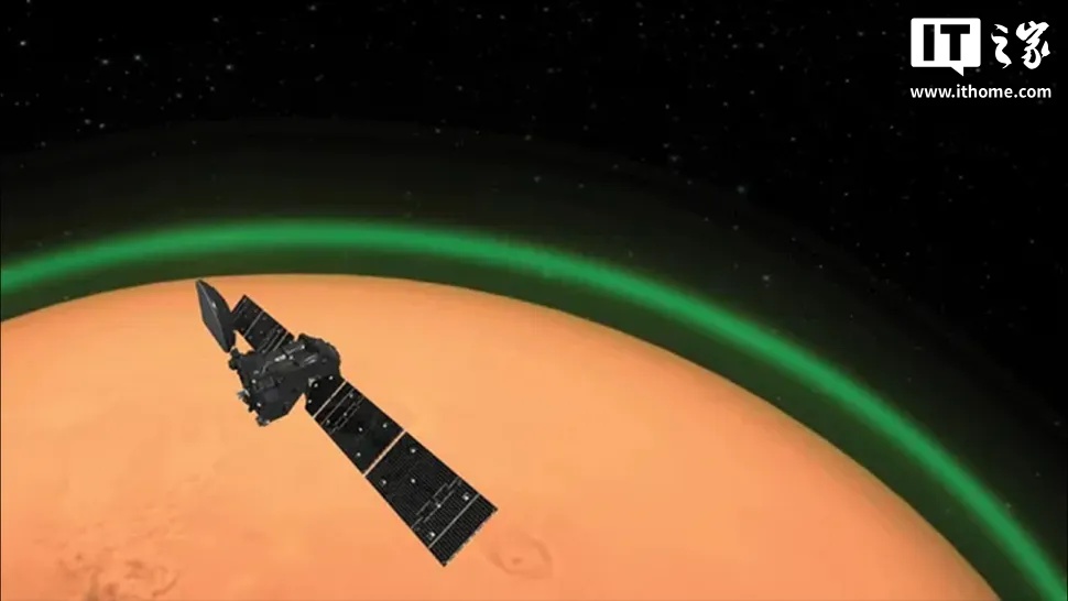 据IT之家了解,此前火星已被证实存在多种类型的极光,其中一些甚至环绕整个星球。然而,这些极光此前仅在电磁光谱的不可见波段中被探测到,主要集中在紫外光区域。此次拍摄到的火星极光不仅是首次以可见光波段呈现,而且据信是太阳系中首次仅通过可见光波段拍摄到的极光。