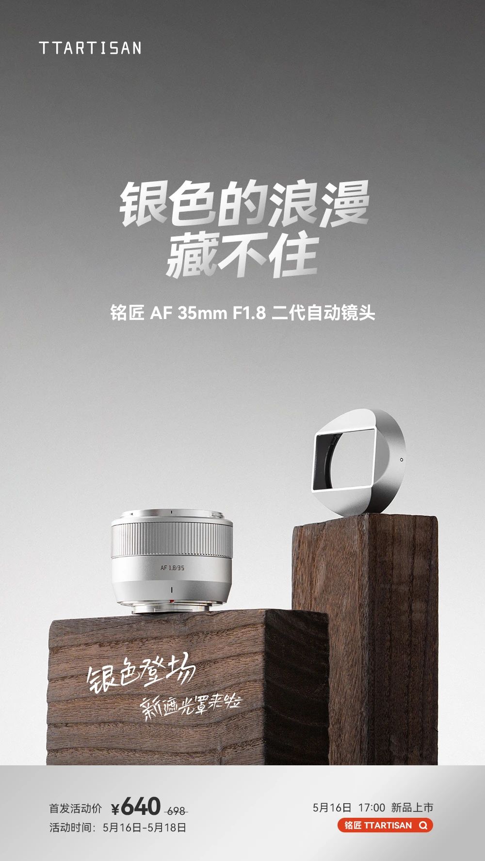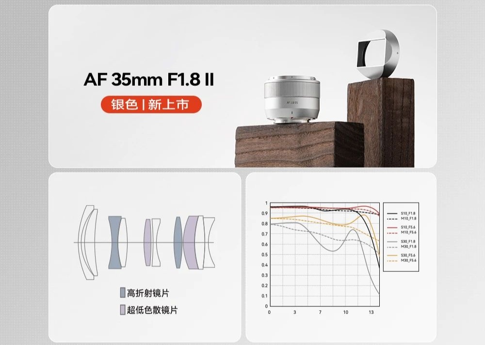 IT之家 5 月 16 日消息,铭匠光学今日宣布 AF 35mm F1.8 II 银色 APS-C 自动对焦镜头正式发布,首发价 640 元。