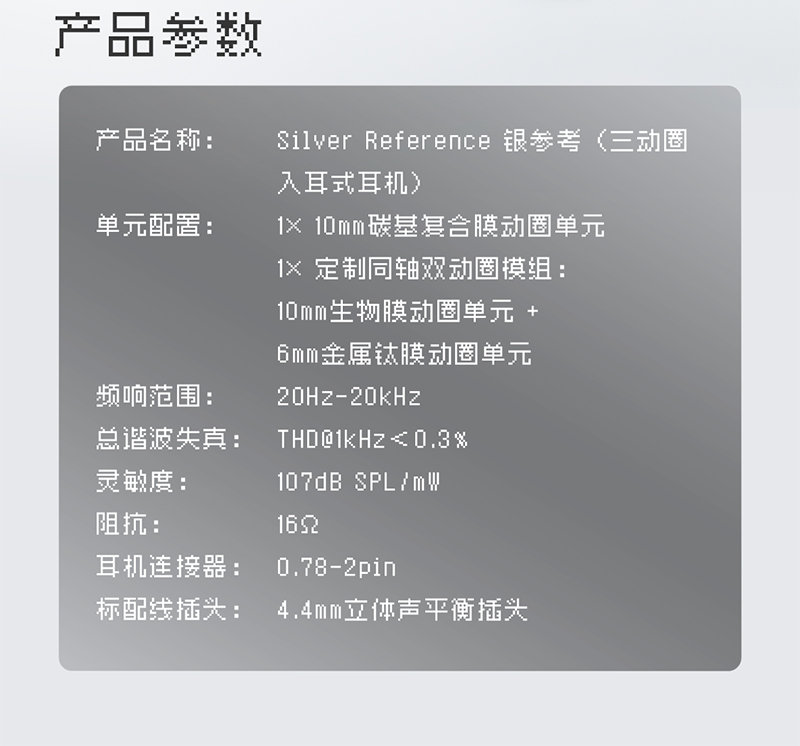 这款耳机采用了 3DD 三单元动圈架构,配备 10mm 生物膜动圈单元 + 6mm 金属钛膜动圈单元。结合专为三动圈架构优化的气流内腔设计,增强低频氛围渲染,改善低频响应控制。