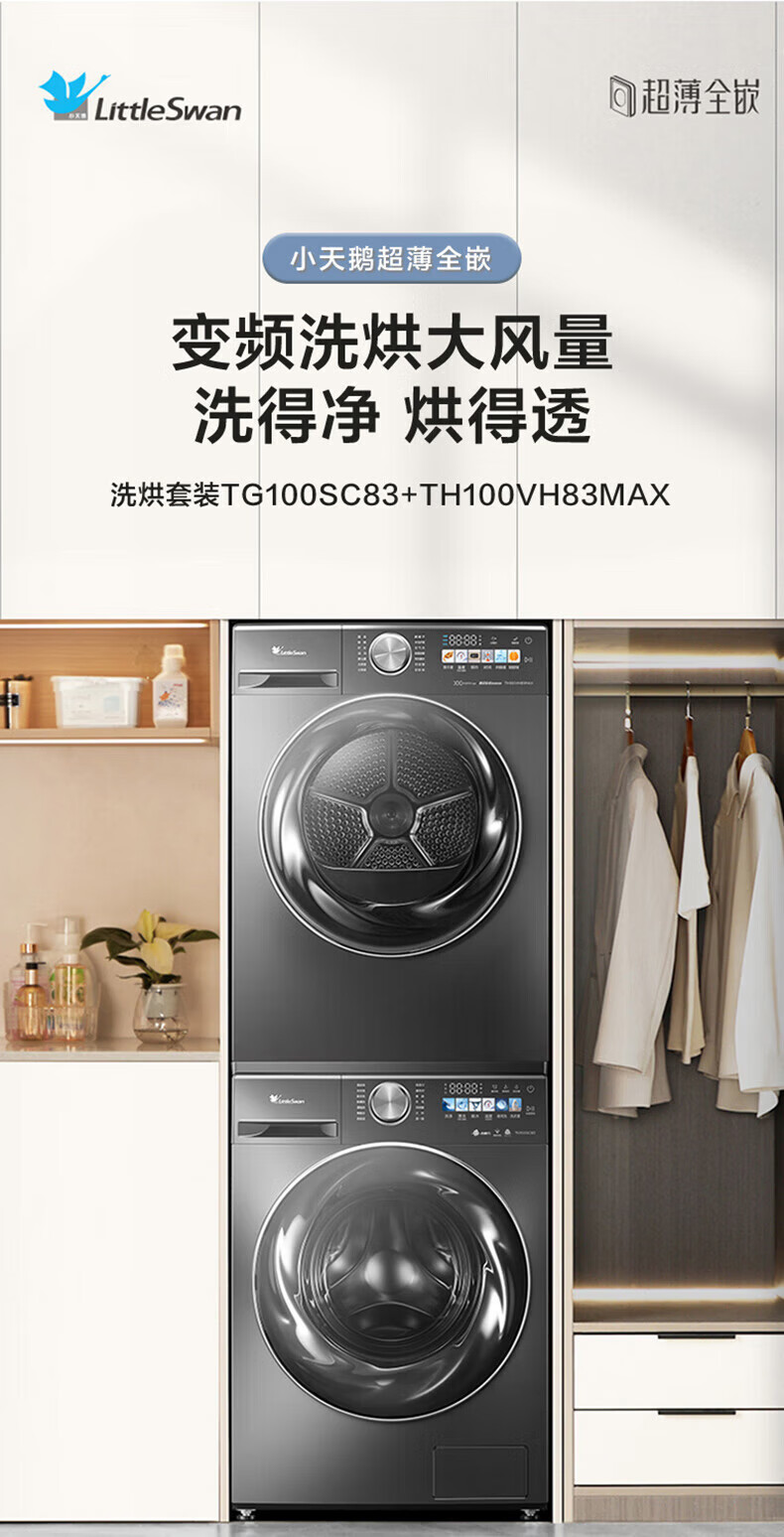 小天鹅・小乌梅 SC83+83MAX 热泵洗烘套装日常售价 9199 元。