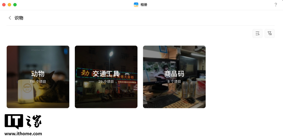 像画面中的动物、交通工具、商品码,都会被识别出来并单独创建相册,以便后续寻找。