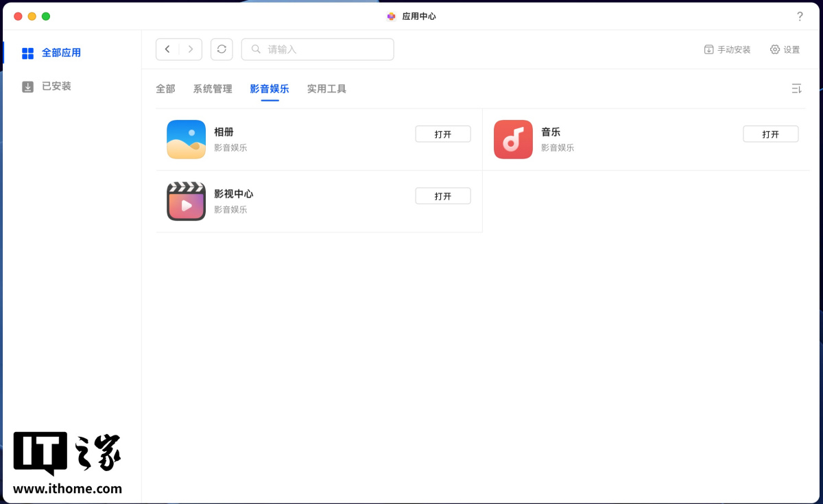 建立完账号和存储池、存储空间,初步的部署就完成了。在开始下一步的体验前,还需要到自带的应用中心里,安装以下三个软件。
