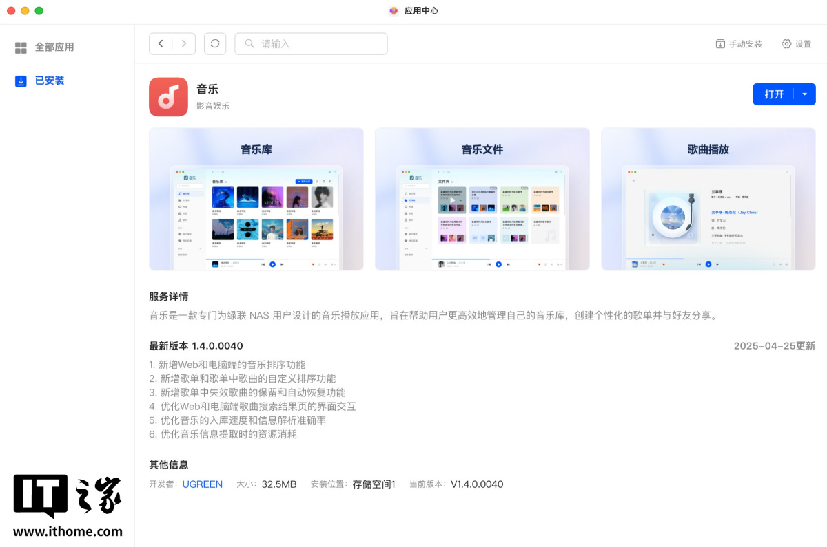 除了视频资源,音乐资源也可以放在绿联 NAS 私有云 DH4300 Plus 中统一管理。同样能够快速识别专辑封面、歌词等信息。
