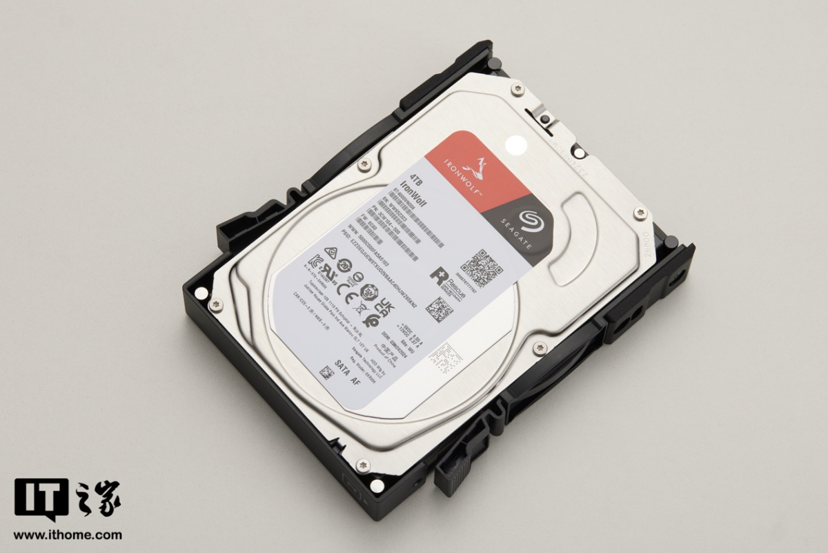 硬盘接口采用 Sata 接口,硬盘支架为卡扣式,硬盘与支架之间采用螺丝固定,并且托架采用了硅胶减震以及弹臂缓冲,硬盘安装完成后,稳定性还是非常好的。