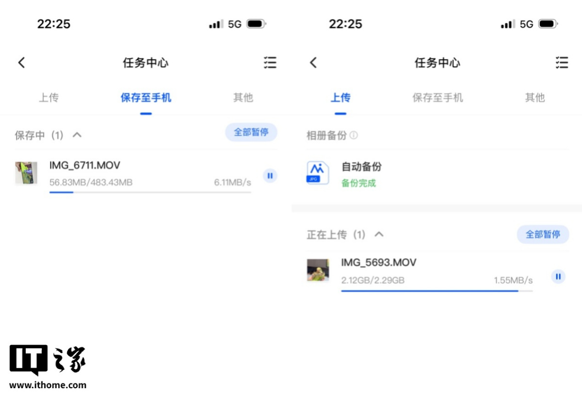而对于手机中的照片,则可以开启相册自动备份,这样回到家链接 WiFi 后,就能自动进行相册的增量备份了。实测在 WiFi 下备份的速度还是非常快的,并且苹果 Livephotos 动态照片也是支持原格式保存的。
