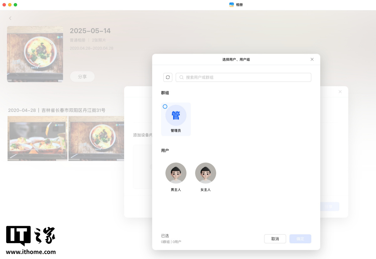 这里可以看到,图库默认存储位置都是在个人文件夹中的,这样家中每个人可以使用各自的账号分别备份自己的照片,而不会混在一起。对于家人想要共享的照片,则可以单独建立共享相册并将照片加入其中,再选定可以查看的用户。