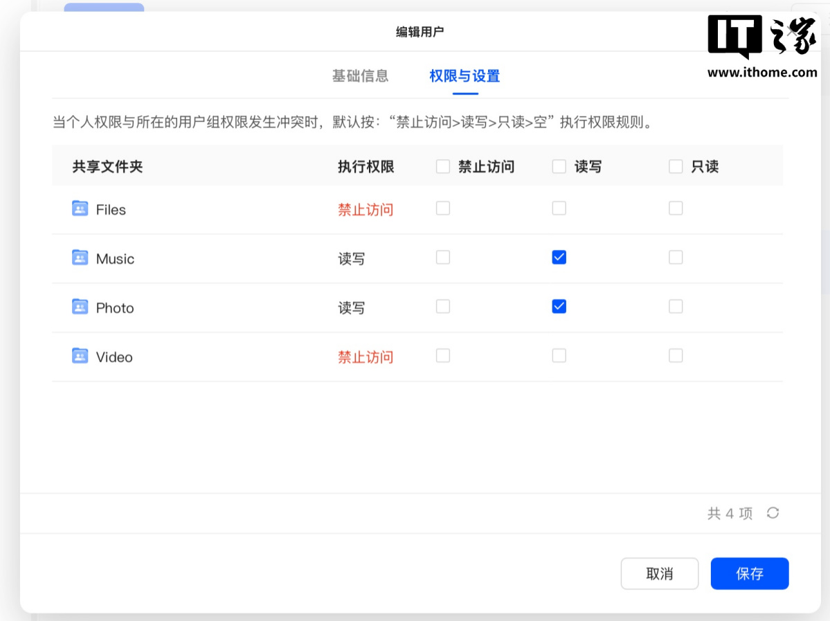 每个账号所能访问的文件夹,也可以分别进行设置,以便于更有序的管理家庭文件。
