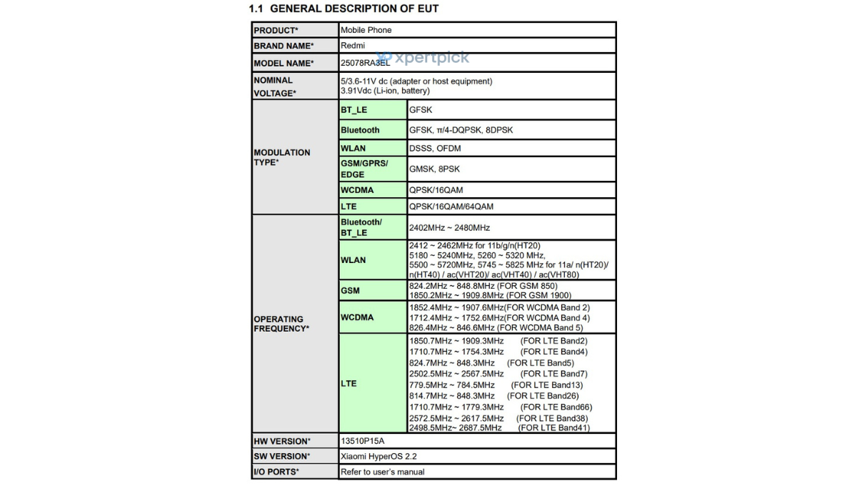 IT之家 5 月 17 日消息,科技媒体 xpertpick 昨日(5 月 16 日)发布博文,报道称型号为 25078RA3EL 的 REDMI 智能手机现身美国联邦通信委员会(FCC),显示配备 6000mAh 大电池,支持 33W 充电。
