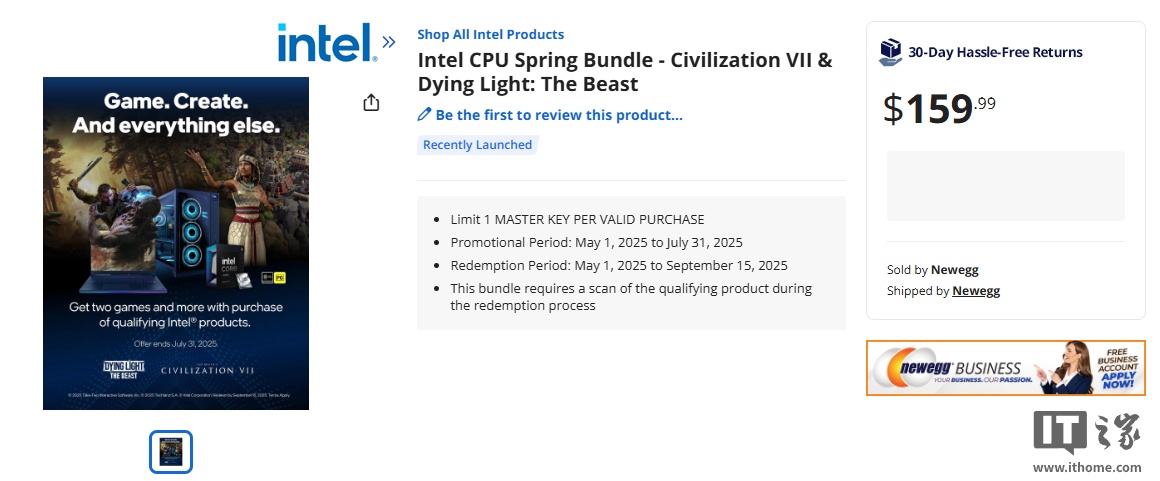 同时,英特尔还将为用户赠送两款 3A 游戏 ——《文明 7》和《消逝的光芒:困兽》,两款游戏标价 159.99 美元(现汇率约合 1154 元人民币),前者 Steam 国区定价 298 元起(不曾打折),后者发售日期仍未公布。