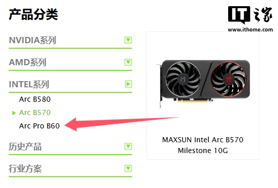 IT之家 5 月 17 日消息,Videocardz 发现,铭瑄(MaxSun)官网新增了基于英特尔 Battlemage 架构的锐炫 Arc Pro B60 专业显卡产品线,但目前还没有列出任何具体产品。