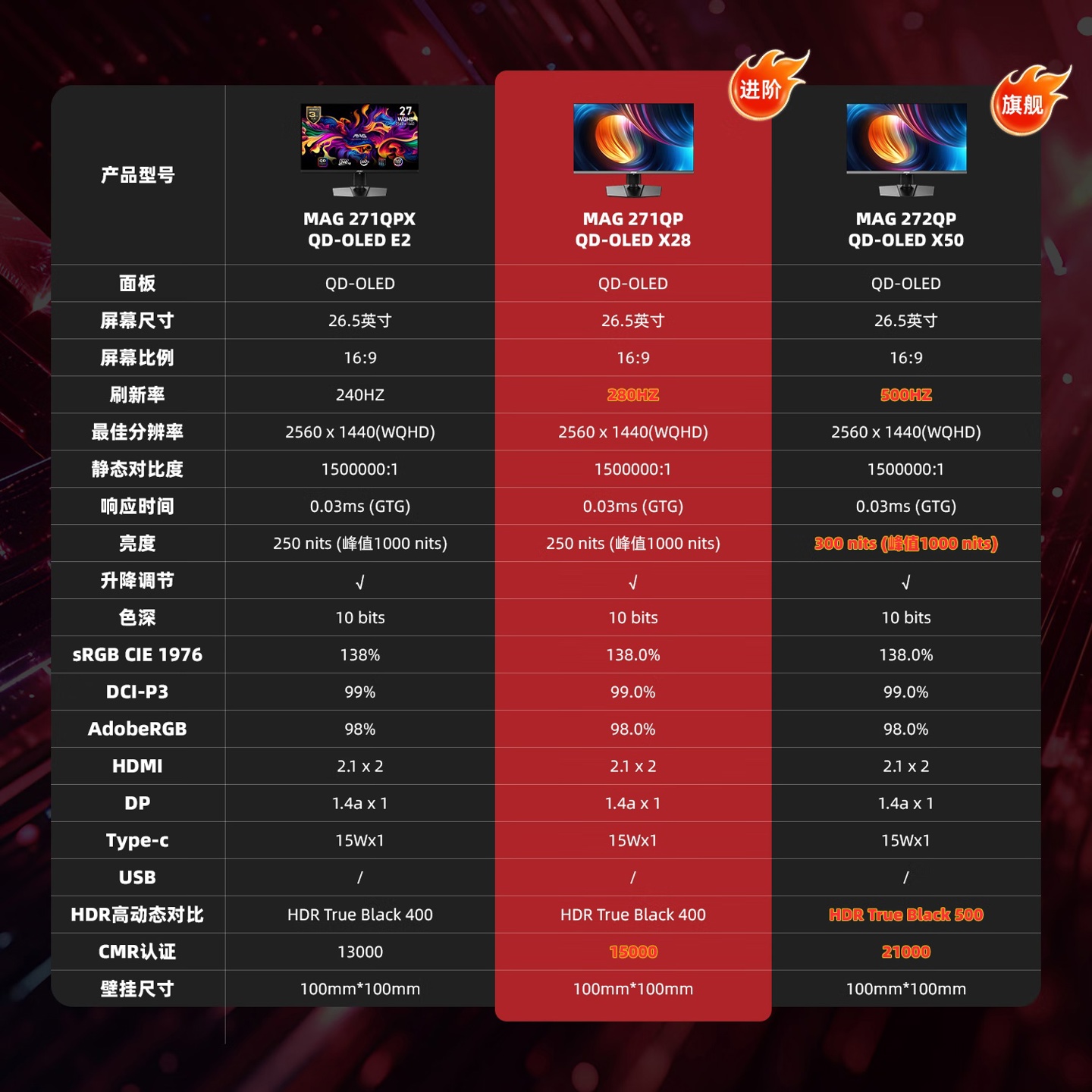 IT之家 5 月 17 日消息,微星 MAG 272QP QD-OLED X50 显示器已于昨晚开售,定价 5499 元,叠加国补后 4675 元起。