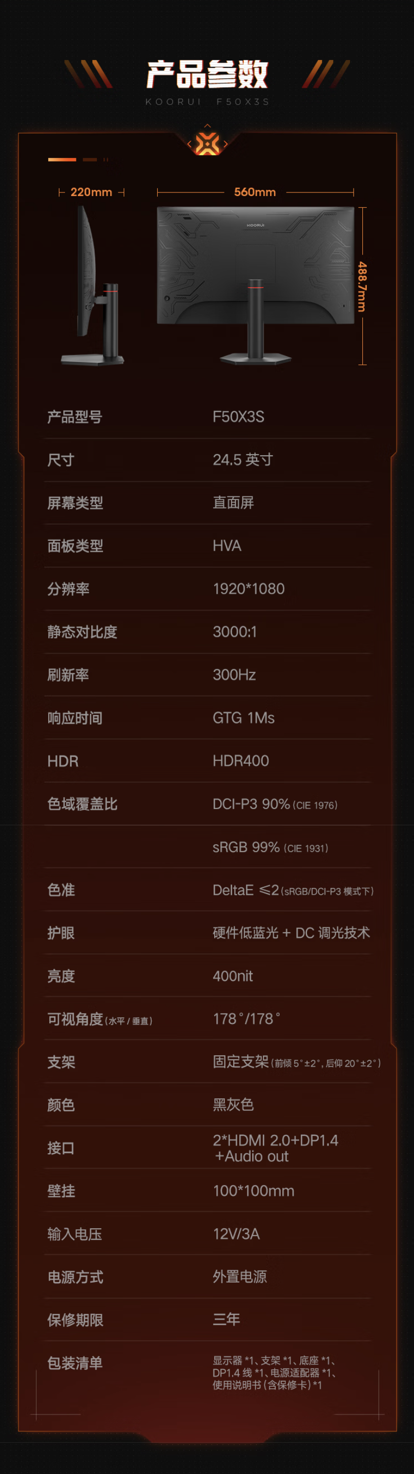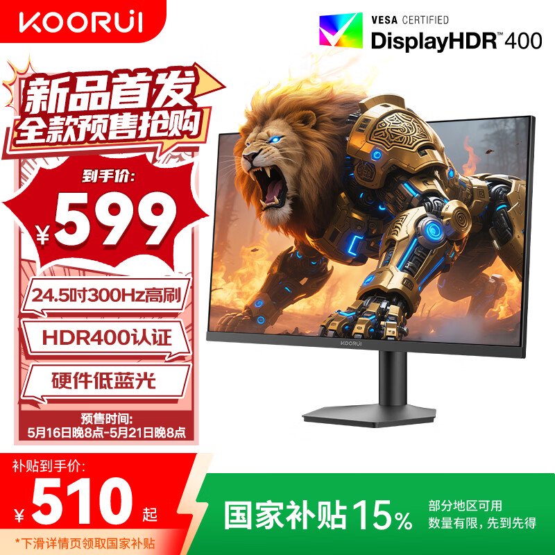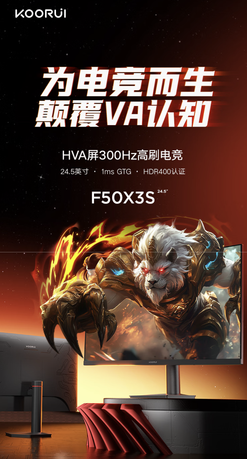 IT之家 5 月 17 日消息,科睿现已在京东上架一款型号为“F50X3S”的 24.5 英寸显示器,这款显示器主打“1080P 300Hz”,定价为 599 元,国补后 510 元。