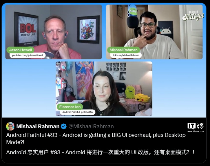 IT之家注意到,该功能被标记为“Android Desktop Mode”,提供多种酷炫功能,如可调整大小的多任务处理窗口、类似传统桌面的导航元素、类似于桌面操作系统(如 Windows 或 ChromeOS)的应用管理系统、移动界面和桌面界面之间的无缝过渡等。